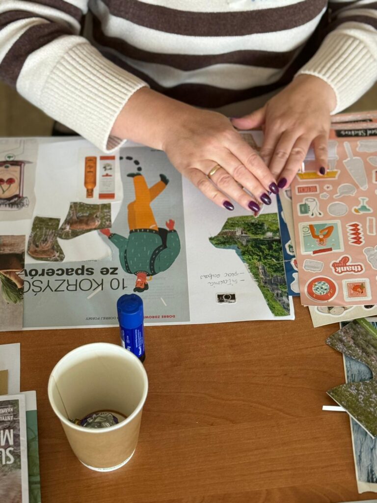 Kolejnym etapem było tworzenie tzw. person – fikcyjnych sylwetek mieszkańców Rzeplina, reprezentujących różne grupy odbiorców działań koła. W dalszej części warsztatu uczestniczki przygotowały artystyczne kolaże prezentujące zasoby miejscowości. Zwieńczeniem pracy była analiza „drzewa problemów”, która pozwoliła spojrzeć na lokalne wyzwania z nowej perspektywy i uporządkować je w sposób sprzyjający planowaniu przyszłych działań angażujących mieszkańców.