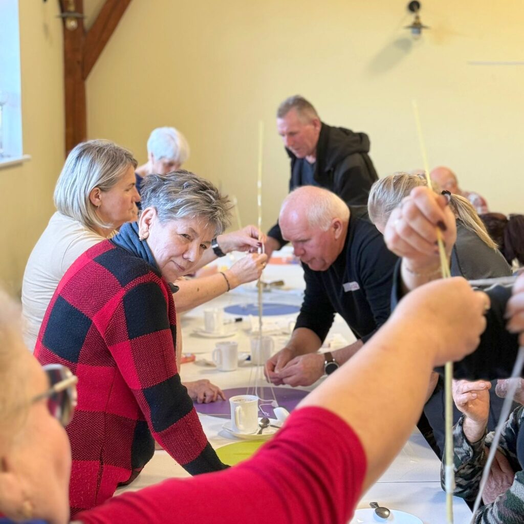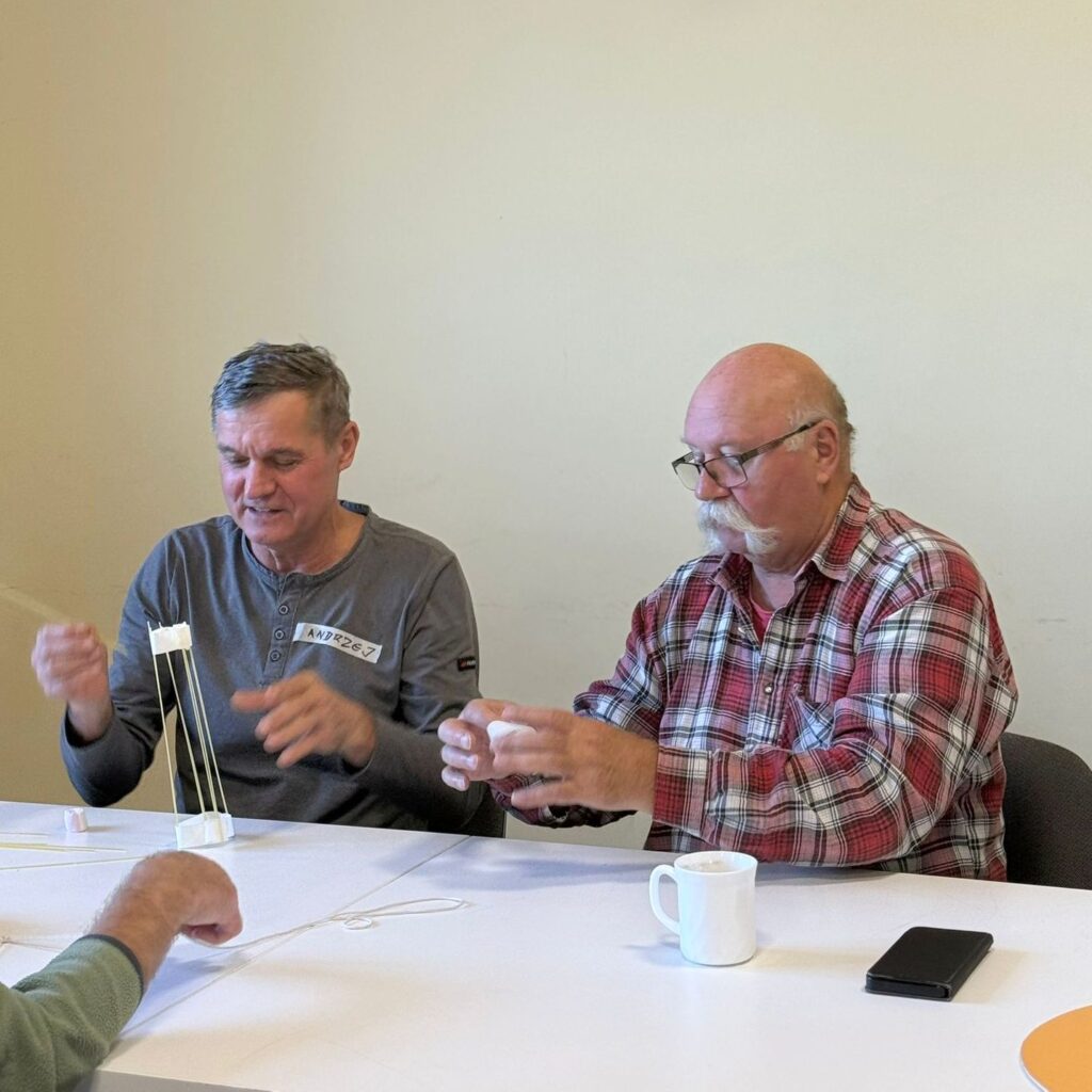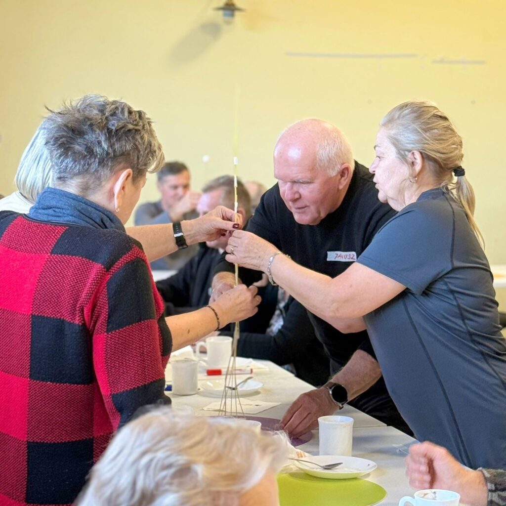 Spotkanie w Linówku zgromadziło liczną grupę osób, w tym gościnnie przedstawicieli Stowarzyszenia Miłośników Kolei Wąskotorowych „Semafor”. Warsztat rozpoczął się od rozmowy o ostatnich sukcesach koła – w szczególności o zdobyciu nagrody Perła 2025 Produkt Regionalny. Był to punkt wyjścia do dyskusji o tym, czym jest zespół, jakie cechy wyróżniają dobrze funkcjonującą grupę oraz w jaki sposób budować pozytywną synergię.